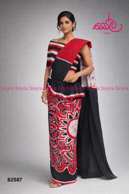 LKR 6,500.00Red and Black colored handcrafted Batik Saree B2508