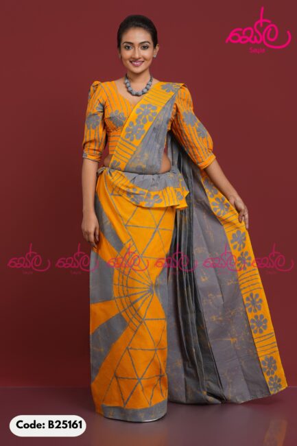 LKR 8,500.00Grey and Yellow Colored handcrafted Batik saree B25161