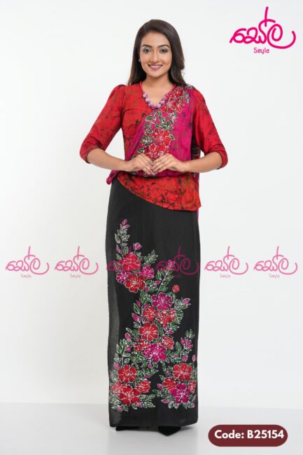 LKR 8,500.00Red and Black Colored hand crafted batik saree B25154