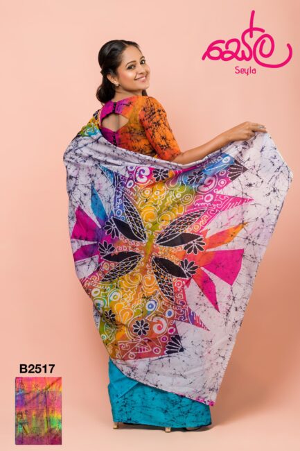 Seyla Batik Saree is fully handcrafted by artisan of Sri Lanka. This cotton material drapes beautifully and comfortable to wear. An elegant saree brings out the renewed and simple feel but that gives its luxurious look