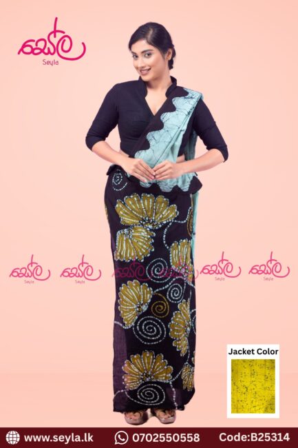 LKR 6,950.00Black and Yellow Handcrafted Batik Saree – B25108