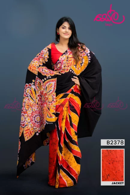 LKR 8,500.00Orange and black colored Batik Saree B2378