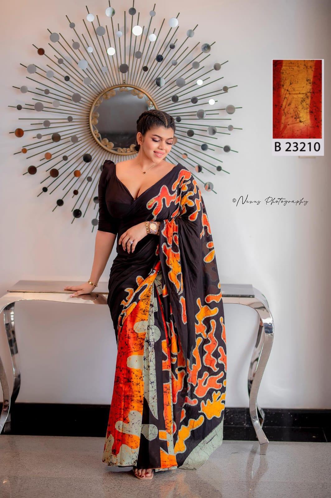 Seyla Batik Saree is fully handcrafted by artisan of Sri Lanka. This cotton material drapes beautifully and comfortable to wear. An elegant saree brings out the renewed and simple feel but that gives its luxurious look