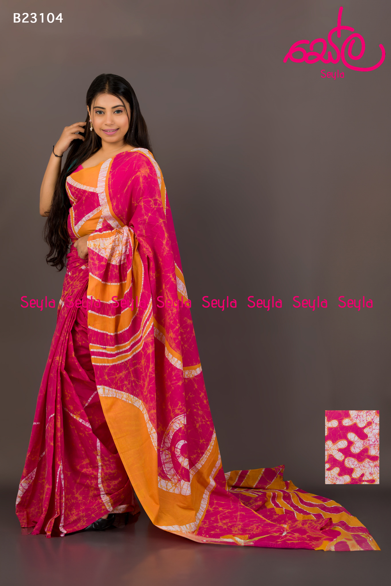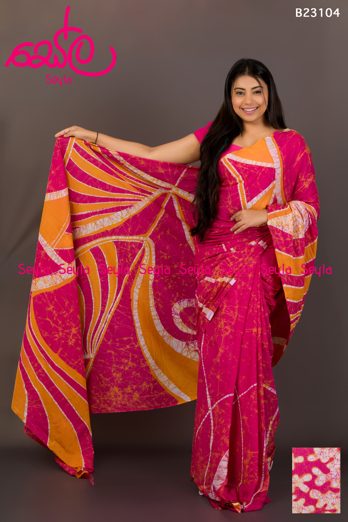 Seyla Batik Saree is fully handcrafted by artisan of Sri Lanka. This cotton material drapes beautifully and comfortable to wear. An elegant saree brings out the renewed and simple feel but that gives its luxurious look
