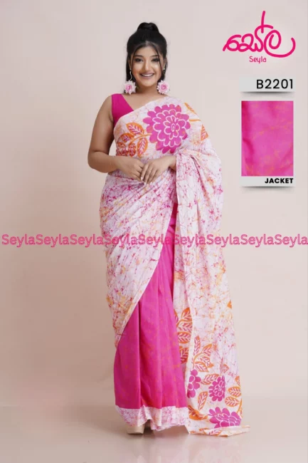 LKR 8,500.00Pink and white colored Batik Saree B24111